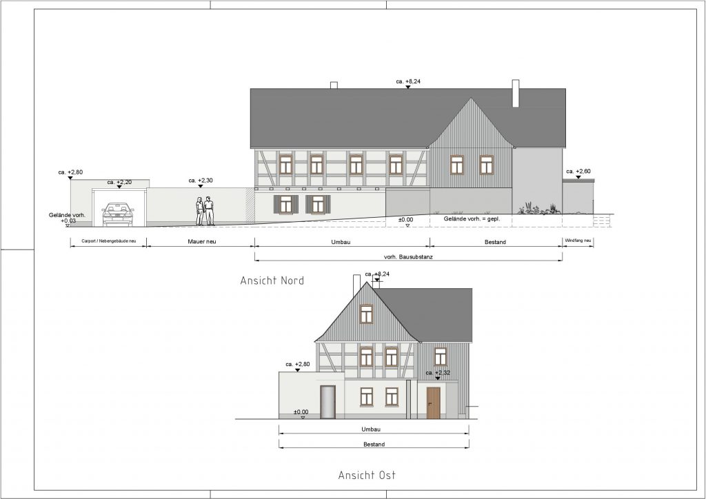 Auf der Ansicht sieht man die vertikale Organisation des Gebäudes, also die Fassaden – als würde von man vor dem Haus stehen und frontal darauf blicken. Es werden Pläne von allen vier Gebäudeseiten angefertigt. Beim Aufriss von Innenräumen spricht man von einem Schnitt, da hierfür, wie beim Grundriss auch, das Gebäude imaginär zerschnitten wird, um in sein Inneres sehen zu können.